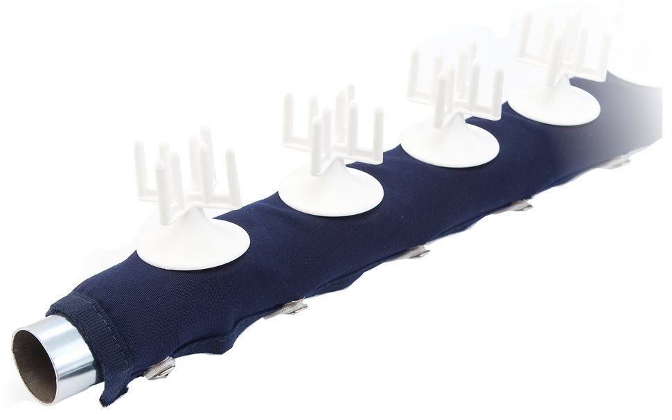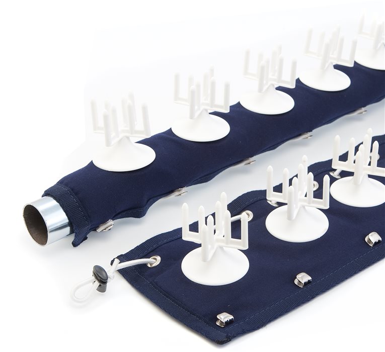 Lo Stopgull® Handrail ha un'elevata versatilità e flessibilità e può adattarsi a tutti i tipi di corrimano di forma e diametro.E' realizzato in tessuto acrilico ed il package è completo di due foderi ognuno lungo 100 cm. I foderi si fissano al corrimano facendo passare una corda elastica attraverso degli appositi occhielli